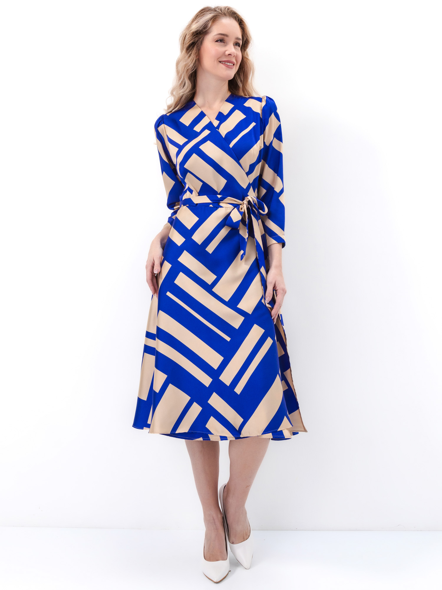 Платье-халат Stefania сине-бежевое