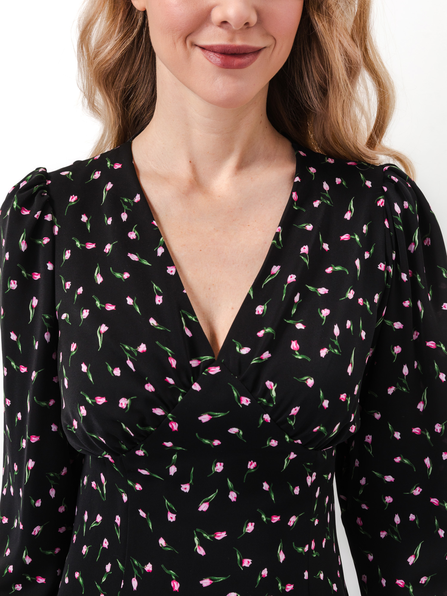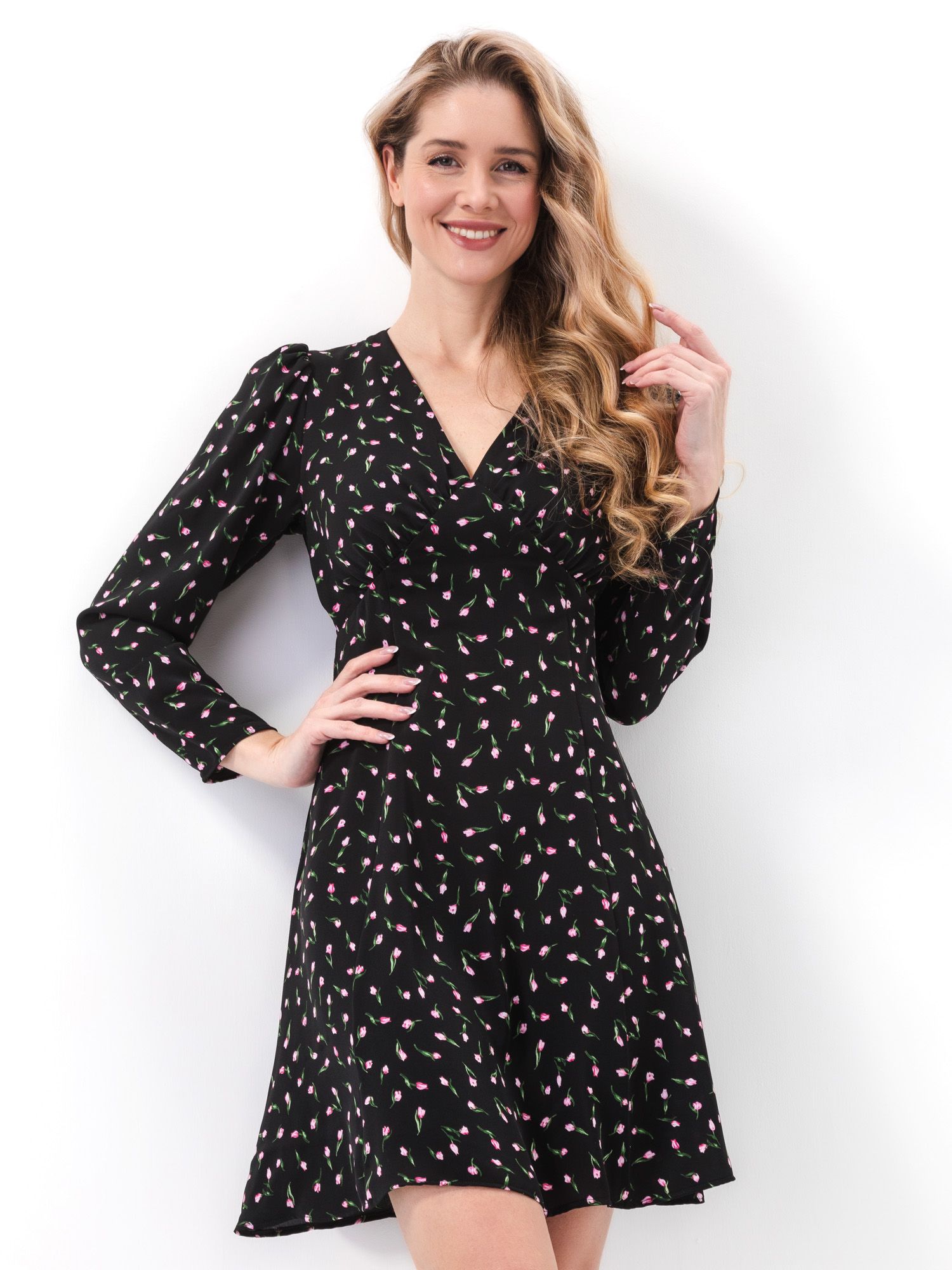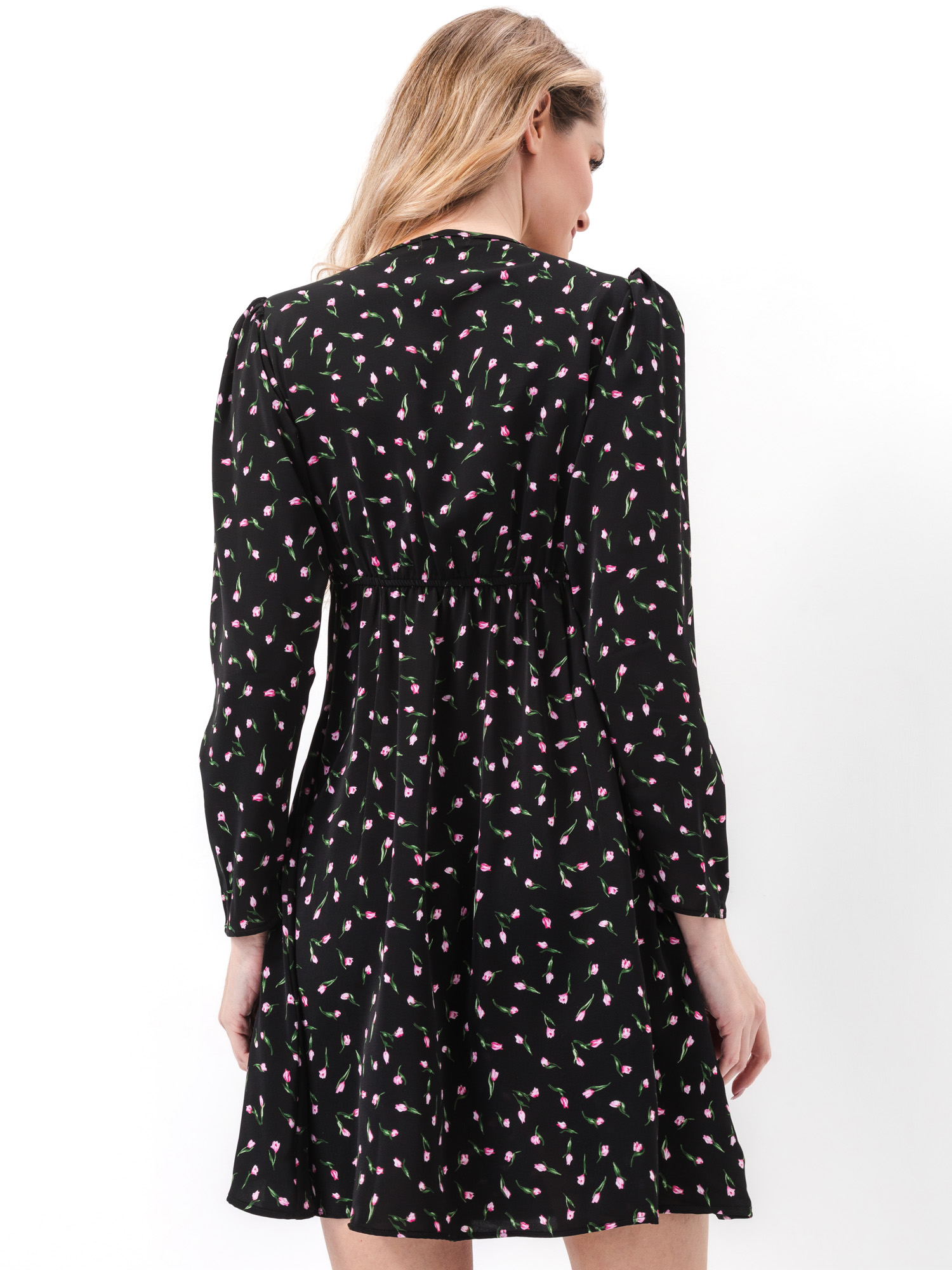 Платье мини Monic черное в цветочек