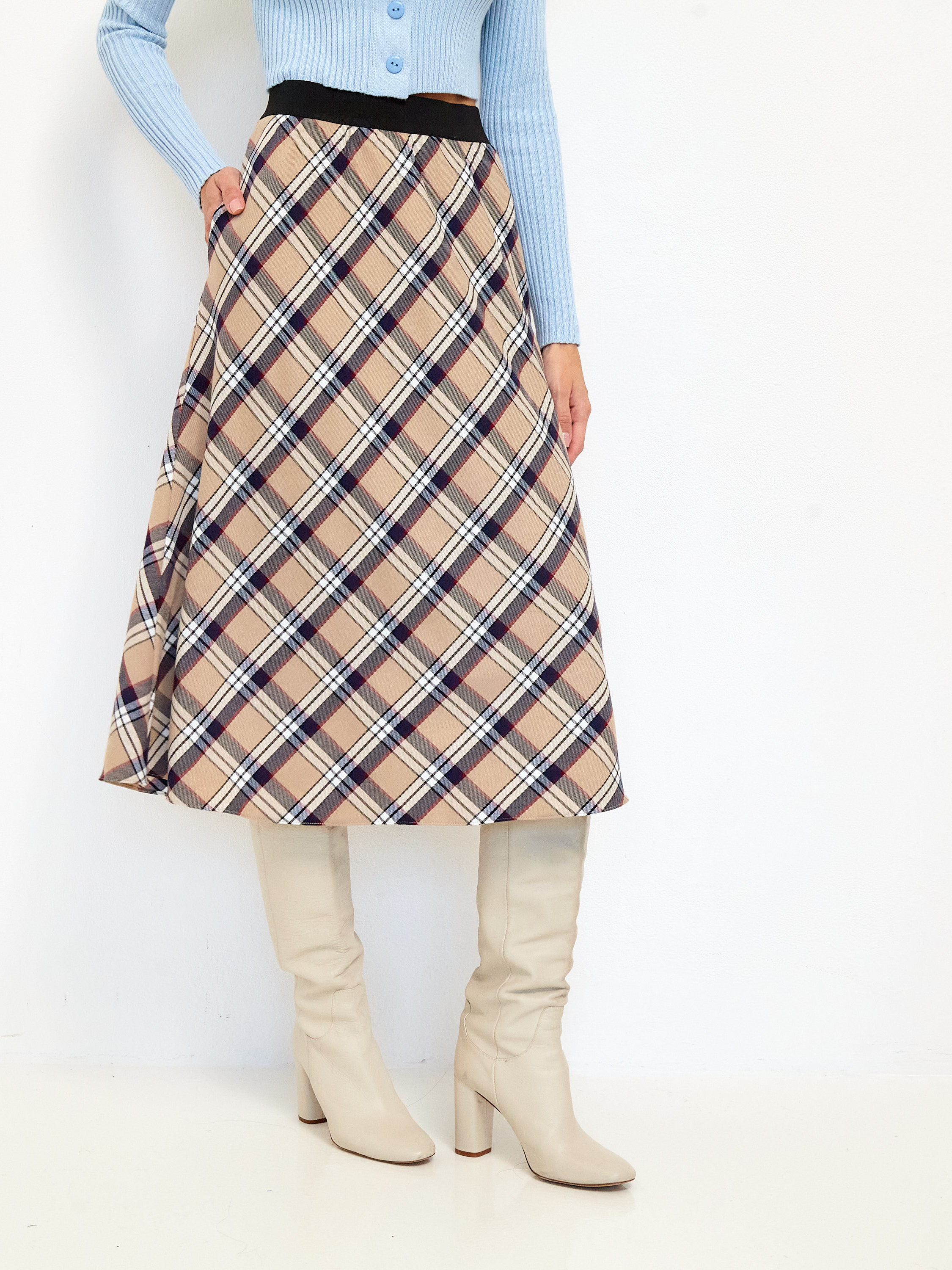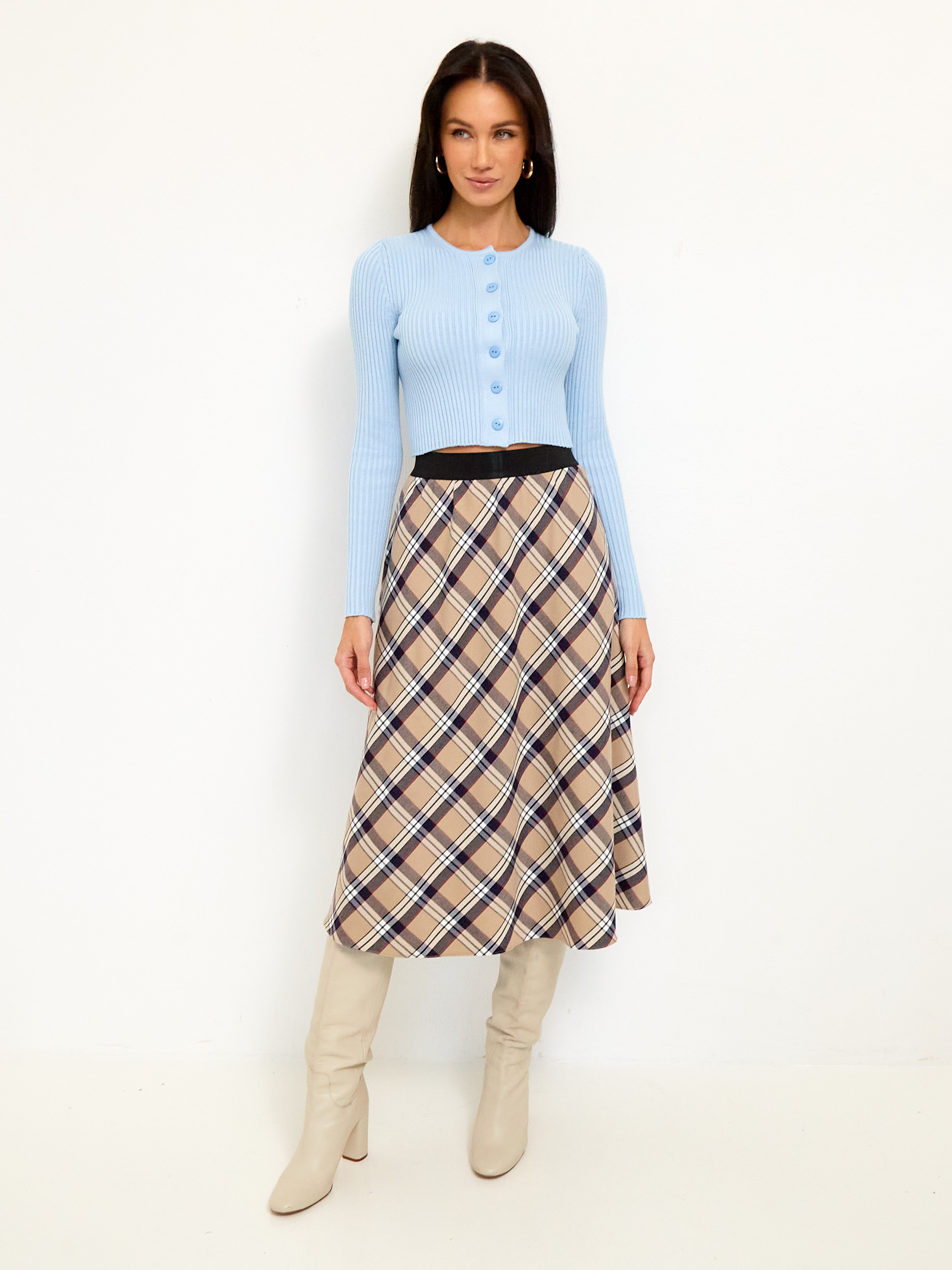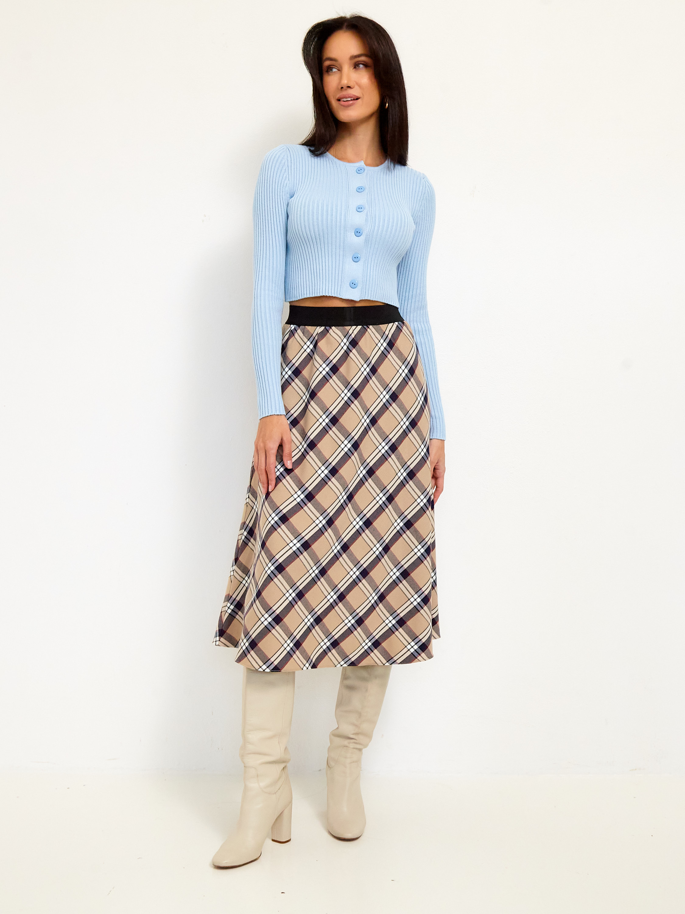 Элегантная юбка «Мелоди» – ваш идеальный спутник в мире комфорта и стиля! Меди длина подчеркнёт женственность фигуры, а нежная бежево-клетчатая расцветка сделает образ утончённым и изысканным. Эластичность благодаря 5%-й лайкре обеспечит свободу движений, создавая ощущение второй кожи. Сделано в России из качественного материала (вискоза 35%, полиэстер 60%), который сохранит свежесть внешнего вида надолго. Идеально подойдёт как для повседневных прогулок, так и для особых случаев!